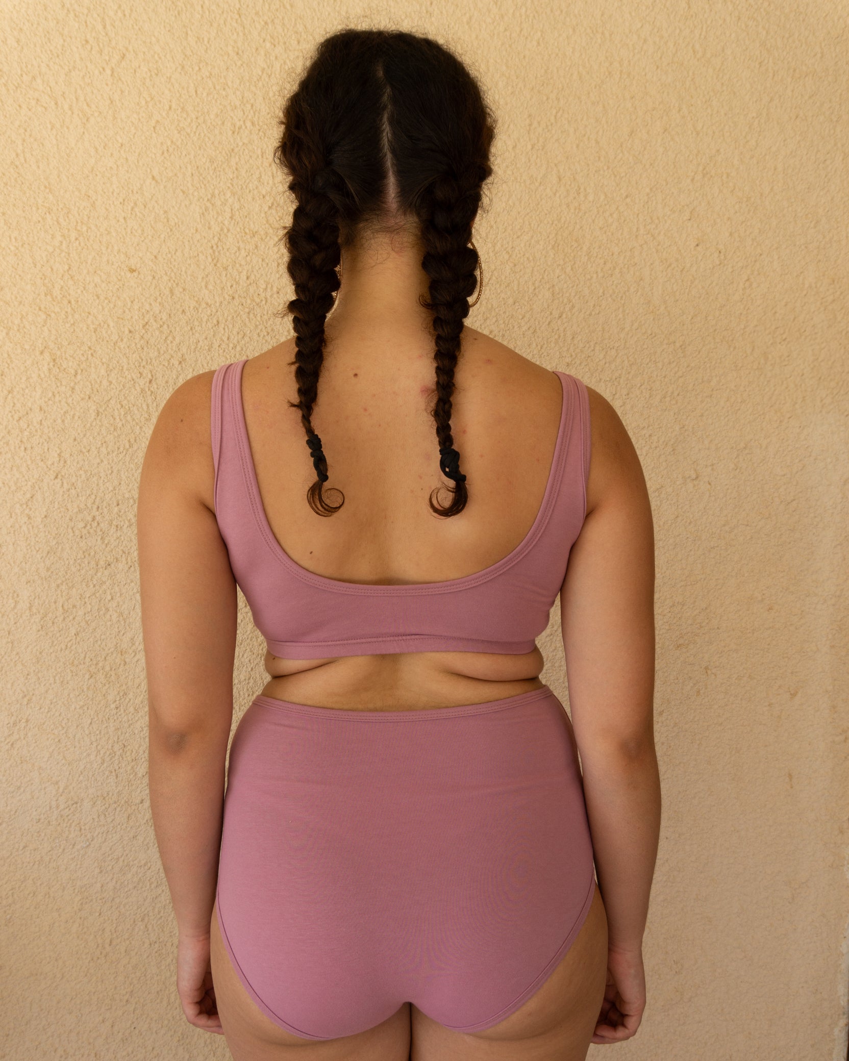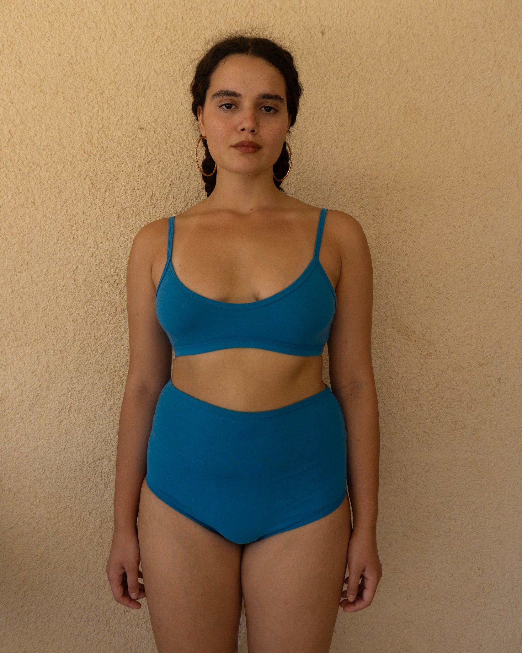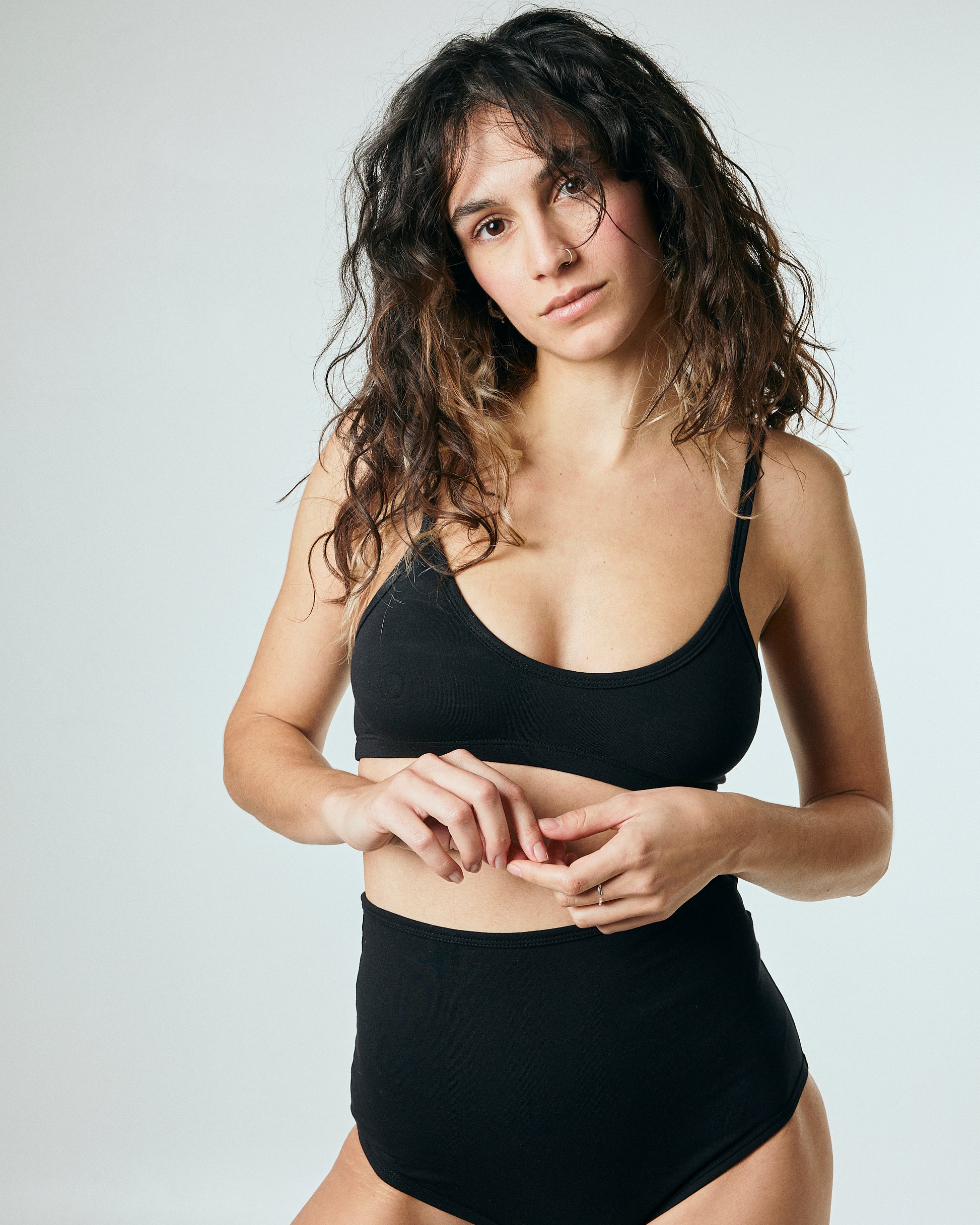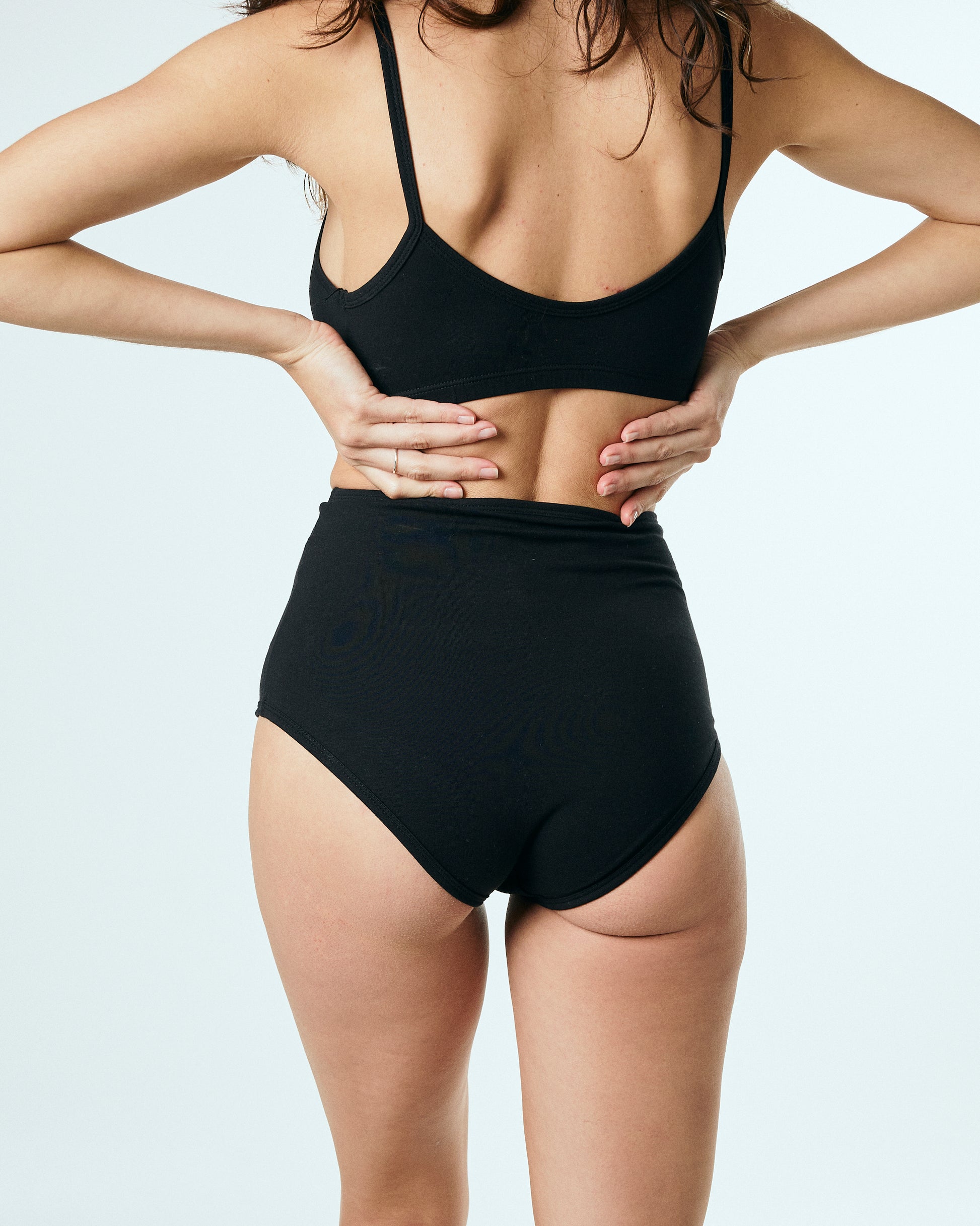 Σλίπ από απαλό, οργανικό βαμβάκι, πολύ ψηλόμεσο. Αγκαλιάζει και καλύπτει εντελώς τα οπίσθια και την κοιλιά. Δεν υπάρχουν λάστιχα σε κανένα σημείο του επιτρέποντάς του να αγκαλιάσει απόλυτα το σώμα και να εγγυηθεί απόλυτη άνεση. Συν το ότι η κοιλιά μένει πάντα ζεστή!